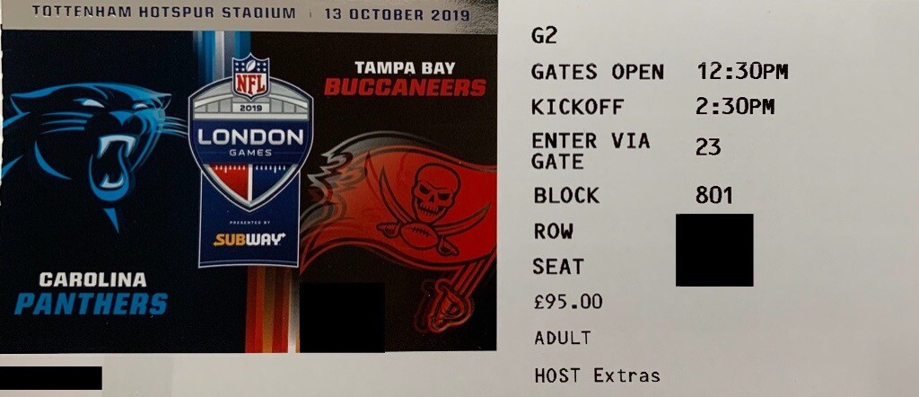 2 X 2019 Nfl London Tickets Carolina Panthers Vs Tampa Bay